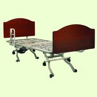 Semi-Electric Bed With 1633-Innerspring Mattress With Foam Sleep Surface And Fda Full Rails, Plastic Ends, 1 EASemi-Electric Bed With 1633-Innerspring Mattress With Foam Sleep Surface And Fda Full Rails, Plastic Ends Introducing the new Patriot Semi-Electric Homecare Bed with a grid sleep surface! Designed and engineered by the same team who develop the GF Long Term Care beds. Sleep surface and motors are MADE IN THE USA! The motor unit and bed design provide the ultimate in quiet, smooth operation. Complete welded steel frame construction. The head and foot sections can be raised or lowered simultaneously or independently with one hand control. During a power failure the motor unit can lower both the head and foot section with just a single standard 9 volt battery. Assembles easily with just five components. Designed to meet the requirements of applicable HCPCS codes. Total bed weight assembled: 166 lb (bed and motor only). Available with Fiberboard Decorative Walnut Bed-ends or High-impact Plastic Bed-ends. Maximum patient weight 350 lbs. 450 lb evenly distributed total weight capacity including patient, mattress, rails, and accessories. Bed Height: Min. 15";, Max. 24"; (at deck level). Lift Range: Head - 60°, Knee - 30°. Overall Bed Size: 87"; L x 36"; W. No external pinch points! Slots in frame to ensure proper rail placement. Locking pins secure bed ends to sleep deck. Attached lanyards prevent loss while moving or storing. Only homecare bed to offer a 4-inch extension kit that can extend either the head, foot, or both head and foot decking. Bed length will be 84"; with one kit, 88"; with 2 kits. The only homecare bed to offer optional corner mattress retainers .Grid Deck offers the following advantages: Much stronger frame. Better mattress support. No spring sag or bottoming out with heavier patients. Easier to clean. No connecting links or springs to lose.Warranty: Two year warranty for defects in workmanship and