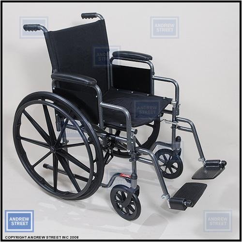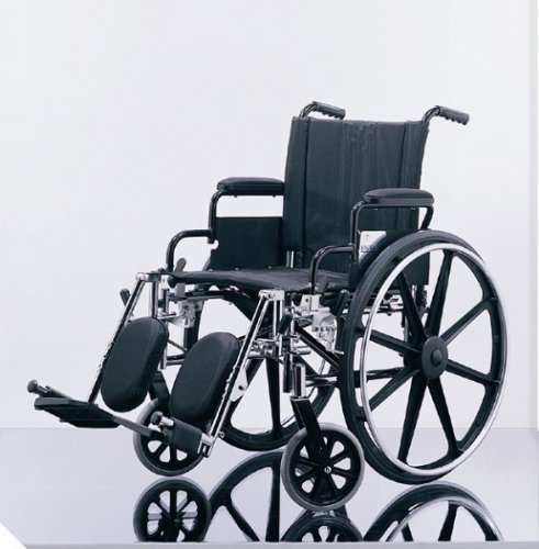 Weighs 31 1/2 lbs. (for 16" and 18" models) and less than 34 lbs. (for 20" and 22" models) excluding foot riggings. Quick release axles allow tool-free removal of the wheels (16", 18"). Swing-back arms with patent-pending push-button arm release. Height adjustable seat back (16"-18"). Cast aluminum seat cradles for durability.This durable chair features a carbon steel frame with chip-resistant chrome plating and threaded seat screw inserts reduce stripping from upholstery changes. Sealed bearings in fork housing, rear wheels and front wheels keep dirt out and are maintenance free. Elevating legrest models features a notched, maintenance-free stainless steel ratchet bar. Padded and upholstered armrests and calf pads provide style and comfort.COLOR: BlackLimited lifetime warranty on frame and crossframe. One year warranty on upholstery, wheel lock assemblies, wheels, tires, castors, handgrips, legrests, arms, armpads, handrims, quick release, axles, and any other "wearable" parts.