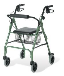 G07886RD Color: Red Picture shown in Green Features: -Lightweight, anodized aluminum frame is height adjustable. -Loop style brakes control speed and easily lock wheels while seated. -Padded seat and backrest provide comfort. -Basket and seat are standard. -Has 6'' casters to help patient maneuver easily indoor and smooth terrains. -Pull up on seat strap for easy folding. Specifications: -Product weight: 15.5 lbs. -Product width: 24''. -Product length/depth: 23''. -Height range of handles: 34'' - 38''. -Seat height: 21.75''. -Width between handles: 18.5''. -Seat size: 12'' W x 13'' D. -Approximate user height 5'4'' - 6'2''. -Width between rear wheels: 20.5''. -Available in several colors. -Weight capacity: 275 lbs.